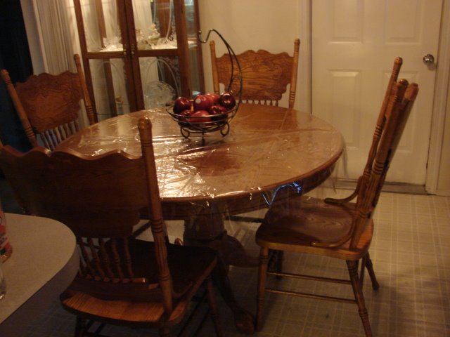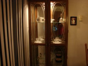 We’re enjoying the dining room set immensely! About a week after the dining room set arrived, my father-in-law brought over my mother-in-law’s curio cabinet and it’s sitting in the dining room now (as shown in the above pictures). Already the way the house looks is improving!