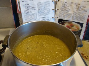 I also found an article in the latest issue of Better Homes & Gardens (publisher of my favorite cookbook), on how to organize your freezer better. So I’m working toward a goal of having an organized freezer and utilizing as much space and still have easy access to everything in there (without having something fall out, landing on my foot), using the ideas in that article. Hopefully in my next blog (or the one after that), I’ll have a picture to post of the newly organized freezer. So this week, I’m working on round two of cooking for the freezer. Today’s feature: Split Pea Soup (one of my husband’s favorites). Ep