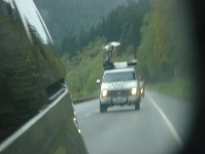 Now, Heather looks like she’s cool with everything. Really, she’s tuned into her iPhone, listening to the Jonas Brothers and trying to tune out the song “Convoy” and the various 70’s & 80’s tunes from her parents’ childhood that were blaring from the CD player. Kylin was just happy to be going to the coast and despite the weather (rainy) and being told that we probably wouldn’t be going to the beach, in his mind, he was going to the coast and that means beach. To quote Mr. Bean, “To the beach!”