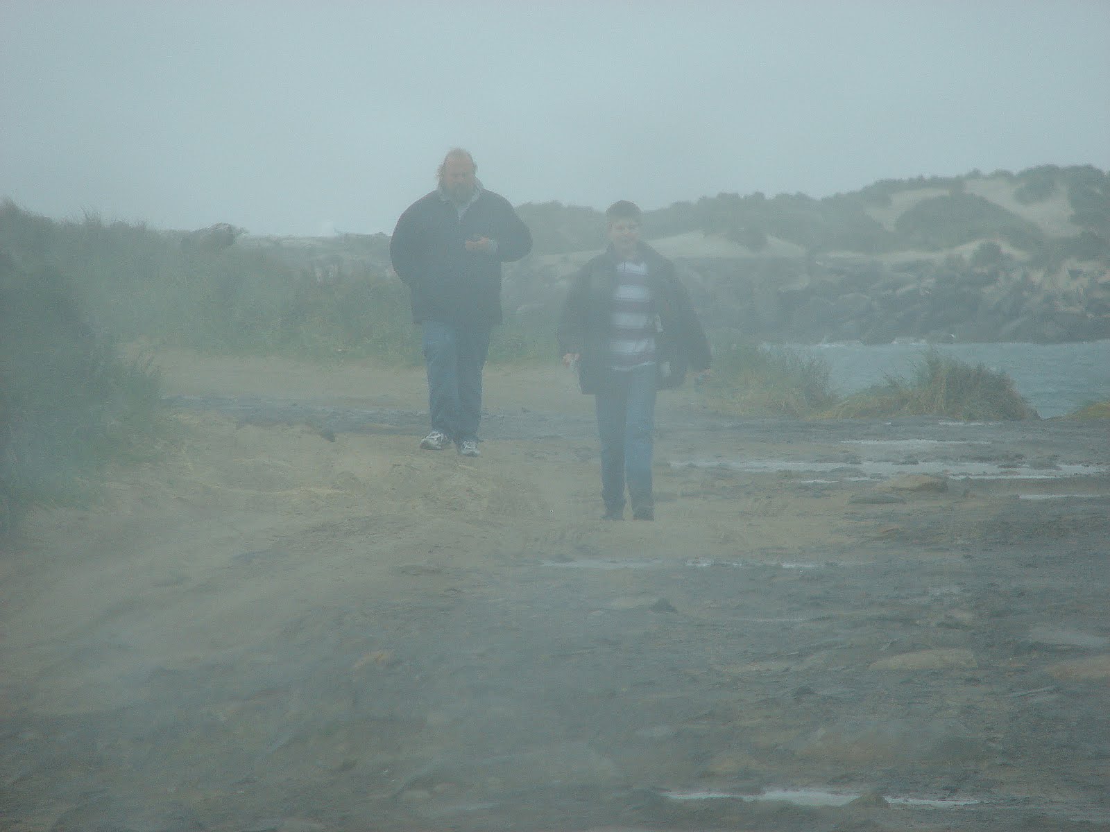 After our dinner, our son was very persistent about going to the beach. It was not “go to the beach weather” at all. It was so windy that it was shaking our van, and the rain that was coming down, was actually coming in at an angle. The rest of us in the car, really had no desire to go outside. However, Kylin, in his mind, was disregarding the weather. We were at the coast and we must go to the beach. So we found an area where one didn’t have to climb over a dune (in the wind & rain) to see the ocean. Kevin ventured out with the boy so he could have his wish fulfilled. Heather & I waited in the car, and stayed dry. At one point, we did receive a text from Kevin that just read “Brrrr!”. After about 20 minutes, they came back, and Kylin’s shoes were wet because he was close enough for the water to come up on shore and soak his feet.