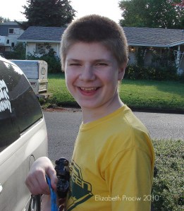 So here’s the happy boy. He’s had dinner, and now he wants to fill up on a Reese’s Sonic Blast! (It took me at least 3 tries to get him to smile like he was happy and not give me one of his goofy faces. At least he didn’t stick his tongue out this time)