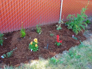 So one of the first things that I did, and I was in the mood to do until my muscles needed to recover, was to pull weeds in the flowerbed. Then I found some perennials (and a few annuals) and a bag of bark, and made a 3 foot section look pretty. There are many more weeds to pull, and flowers to plant, and I’ll take care of them, a section at a time.