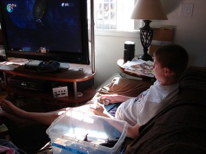 So with her being gone all week, we only had one child at home. What does a younger brother at home do with his time, without his sister at home to play with, or tick him off?