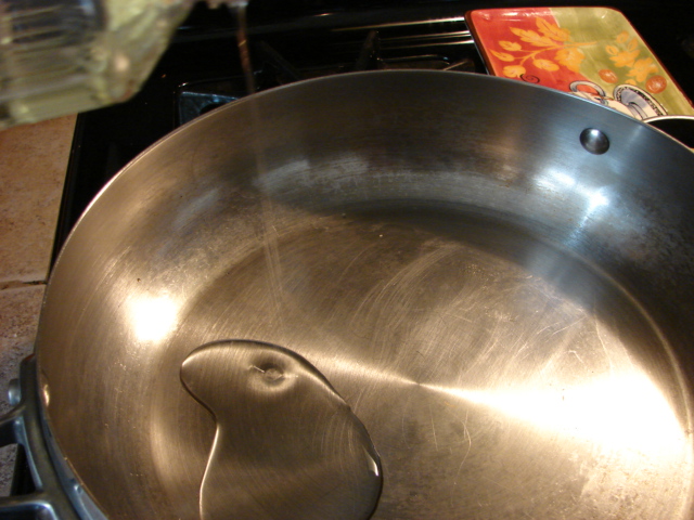 In a larger pan (because you will need one, trust me), pour in about 2 or 3 tablespoons of oil