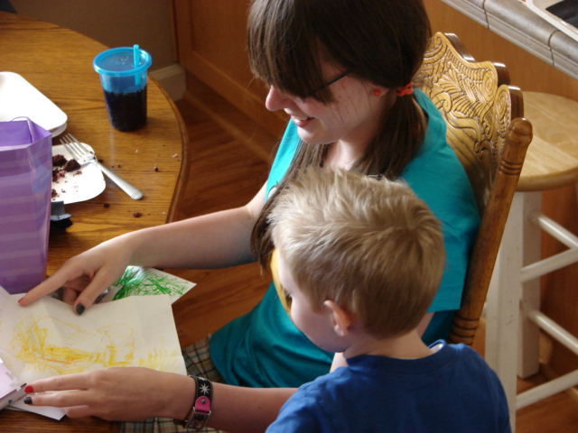 Nephew “D” was helping my girl unwrap her presents, including a picture that he drew for him by himself.
