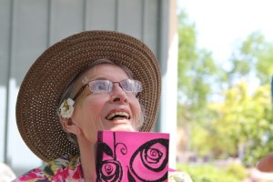 After lunch, we went to wish Kevin’s mother a happy Mother’s Day. Kevin’s sister lives in Texas and because she wasn’t able to fly up for a visit, she sent us a card to take to her. Kevin’s mother has Alzheimer’s Disease and is now in a memory care facility. For this recent visit, the caregivers dressed her up a bit and put a flower in her hair. As soon as she saw Kevin, she was “dancing” in her wheelchair. She doesn’t remember his name, but she knows that she knows him and she’s happy to see him. The day was sunny and rather warm , so the caregivers put a hat on her while we were outside.