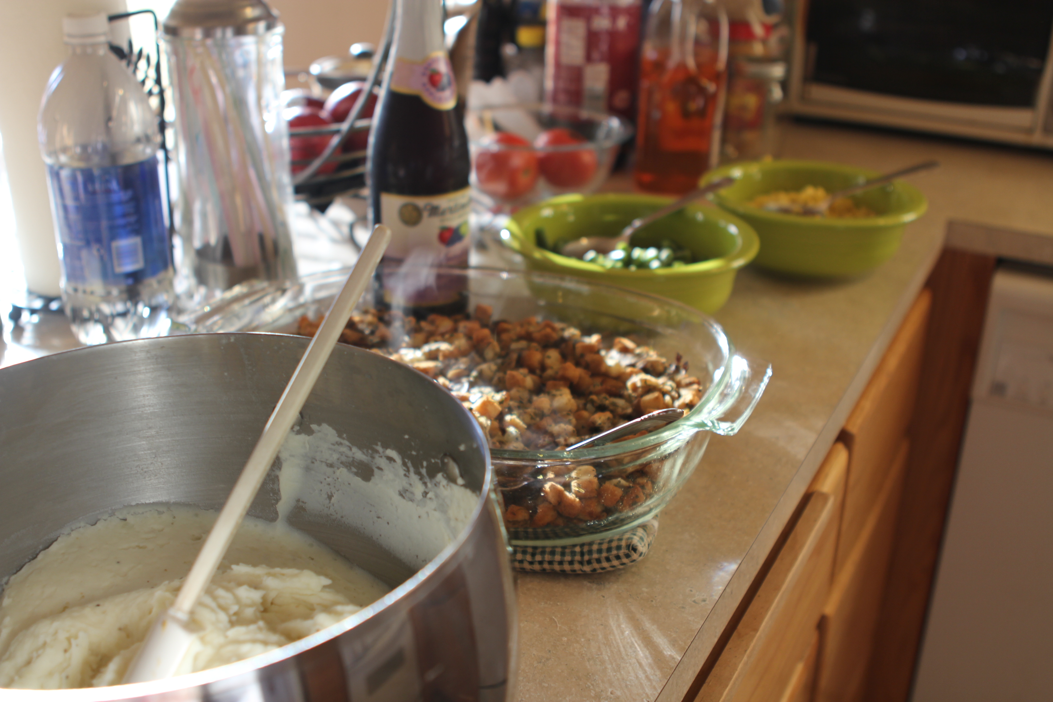 As you can see, there is no sign of a turkey in my photos as we don’t eat meat here. It’s been so long since I’ve cooked a turkey, I don’t even remember how to do it! I think that the last one I cooked, was when I was about 21 and still living with my mother and step-father. Instead of turkey, we eat Morningstar “Chik’n” patties (for anyone wondering if we’re getting enough protein).